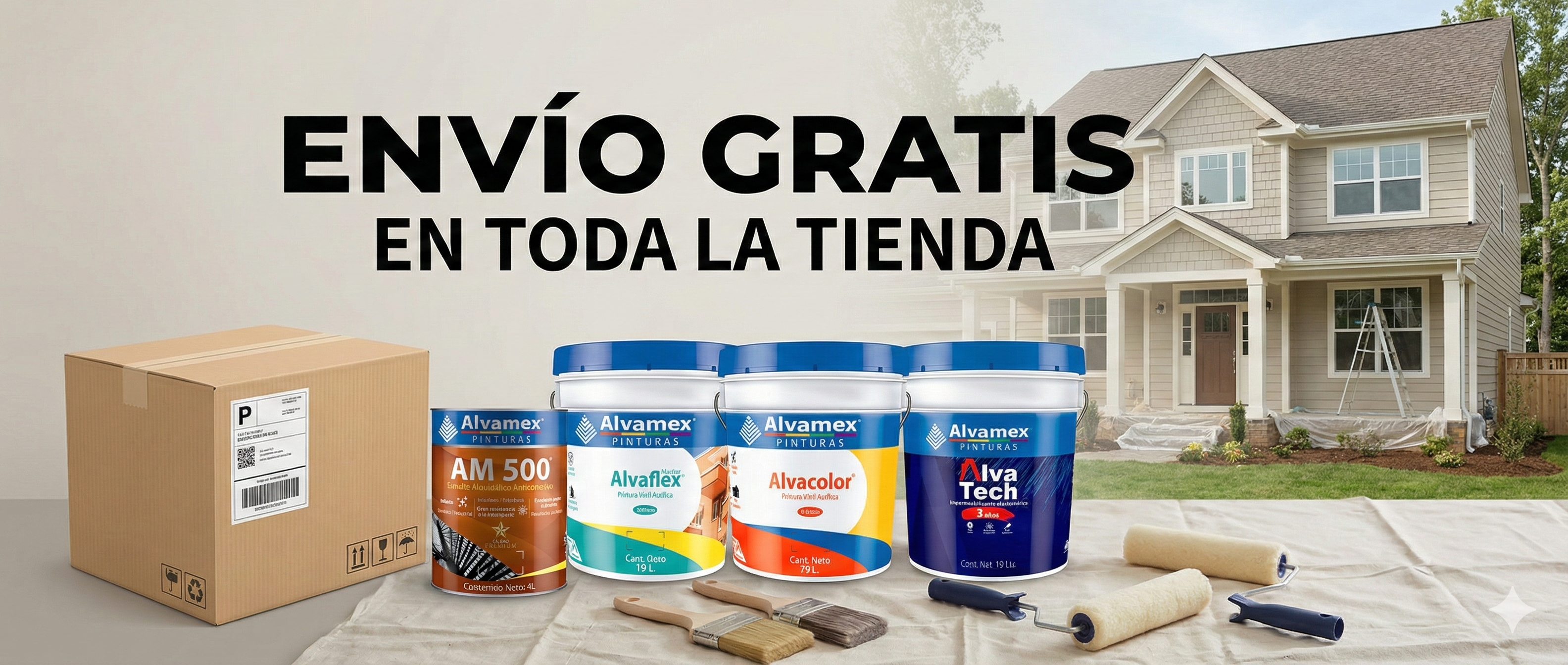 Pinturas para interiores y exteriores, ideales para casas, negocios y proyectos decorativos.